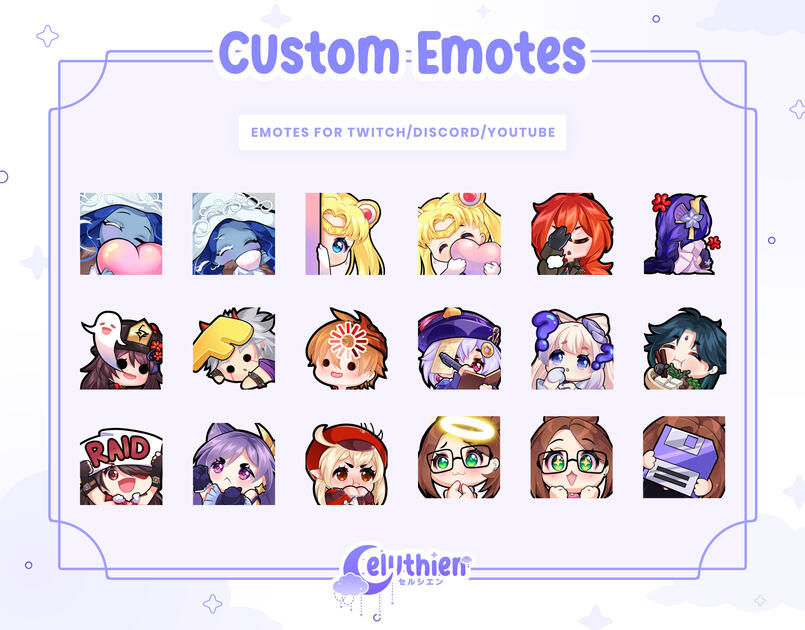 ♦ I don't draw meme emotes (i.e. Pepe, Pog, Kappa, KEKW, etc)